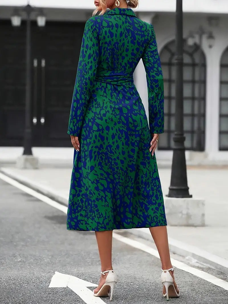 Step into confidence with the Elegant Geometric Print Shirt Dress – the perfect mix of modern style and timeless charm.