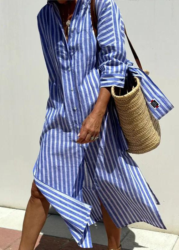 Introducing the Elegant Striped Shirt Dress – Your Perfect Blend of Style and Comfort