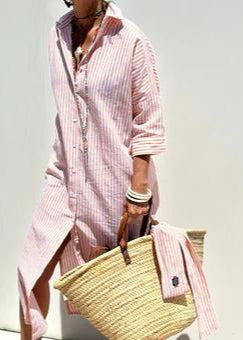 Discover the perfect combination of timeless elegance and everyday ease with the Elegant Striped Shirt Dress. Designed with sophistication and comfort in mind, this dress strikes the ideal balance between fashion and functionality, making it a must-have addition to your wardrobe.
