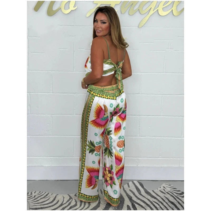 Pair this set with strappy sandals and statement jewelry for a tropical-inspired look, or keep it casual with white sneakers and a denim jacket for an effortlessly cool vibe.